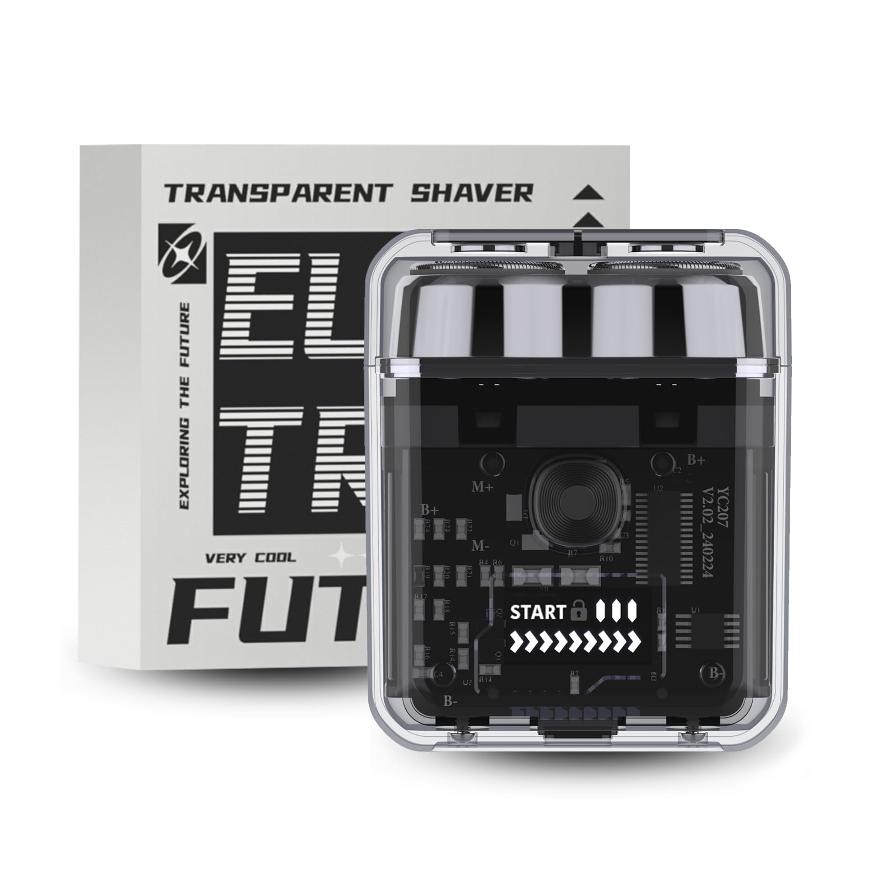 Futuristic transparent mini electric razor